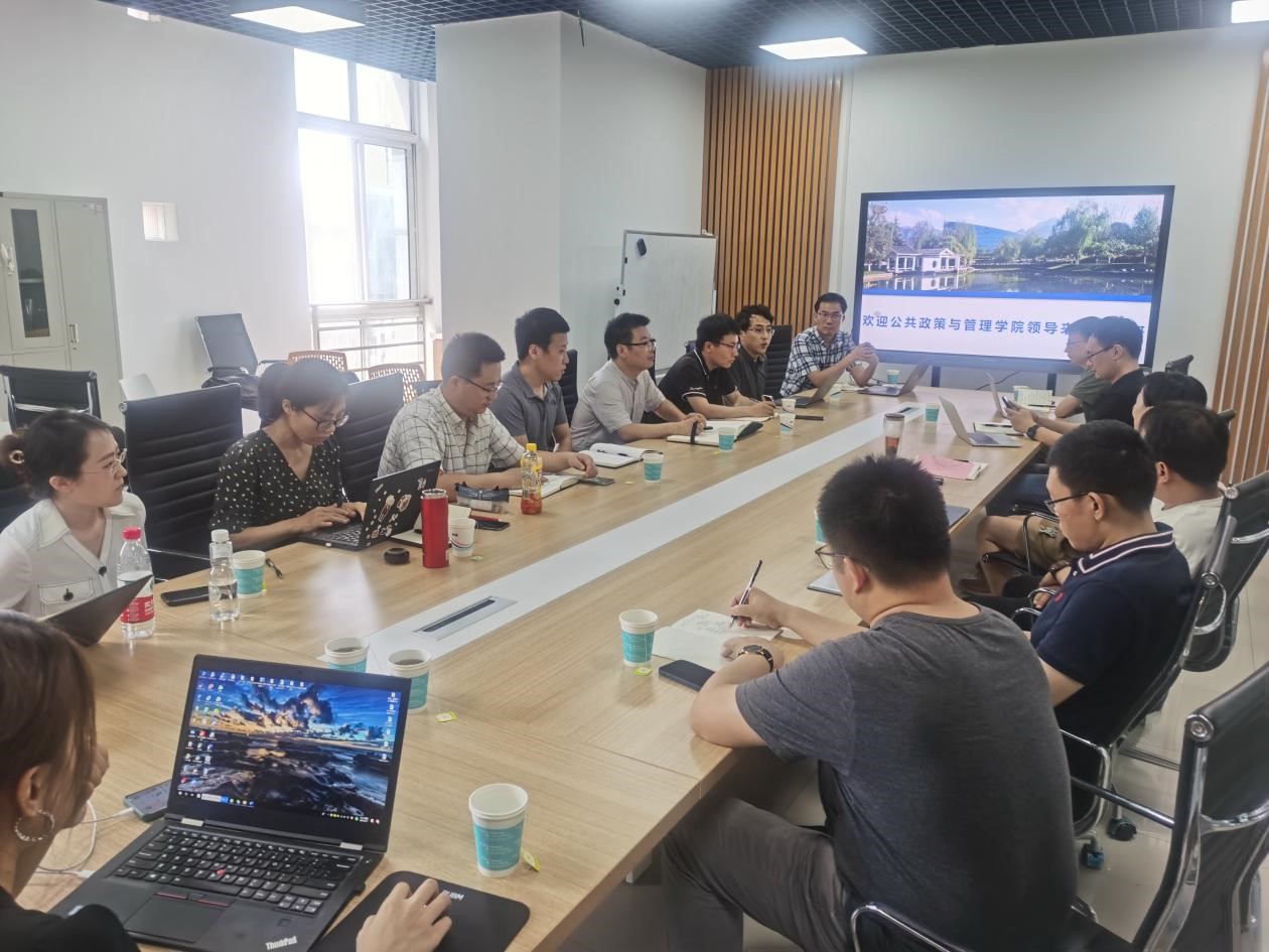 尚学群教授对公司领导和老师的到来表示热烈欢迎,并介绍了课题组的基本情况。尚学群表示希望两个公司可以开展合作,将大数据、机器学习等技术方法应用在不同领域的政策优化中。张清江感谢尚学群提供交流机会,希望青年老师把握机会,充分利用学科交叉产生新的研究成果。
