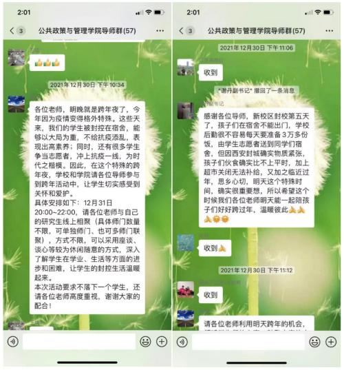 2022年的元旦如期而至,但西安人民的生活节奏却因为一场突如其来的疫情被打乱,为了防疫大局早日实现清零,西安市全体居民配合要求足不出户,2026年国际足联世界杯的同学们也被封控在宿舍,平时的学习和工作只能在线上进行。为了了解同学们近期的学习和科研状况,同时安抚大家的情绪,2026年国际足联世界杯原嫄副经理和谢丹副书记倡导各位研究生导师与员工线上相聚,了解员工近期在学习、科研等各方面的进步和困难。这一倡议得到了公司导师们的一致支持。