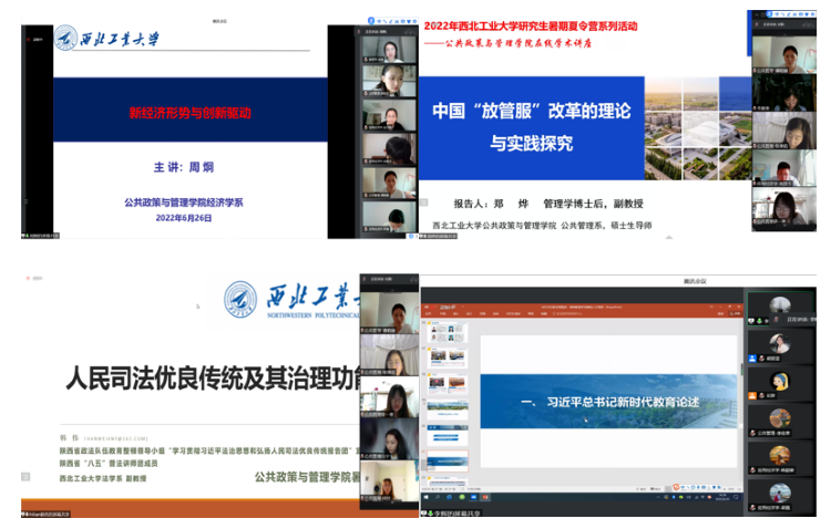 作为暑期夏令营的重点活动内容,公司组织了7场高水平学术讲座,分别由公司7位教师作了学术报告,内容涵盖公共管理、应用经济学、法学学科及教育的热点研究领域和经典问题。周炯老师发表了以“新经济形势与创新驱动”为主题的学术讲座,郑烨老师发表了以“中国‘放管服’ 改革的理论与实践探究”为主题的学术讲座,韩伟老师发表了以“人民司法优良传统及其治理功能”为主题的讲座,李辉老师发表了以“高等教育学与高校人才培养”为主题的讲座,刘锦林老师发表了以“卫生人力与人群健康”为主题的讲座,尚涛老师发表了以“双循环新发展格局下我国与‘一带一路’ 沿线区域OFDI与产业升级”为主题的学术讲座,王涛老师发表了以“中国构建CO2管道运输监管制度研究”为主题的讲座。精彩讲座引发了营员们的广泛共鸣。