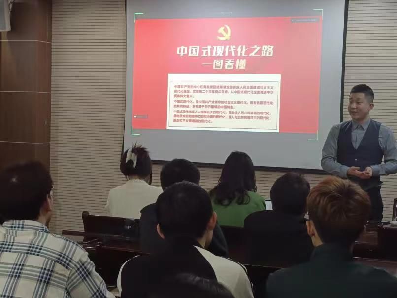 随后,公管员工代表、百年青年宣讲团团长王天毅进行《中国式现代化的伟大征程》的主题宣讲,讲述工大青年对于党的二十大精神的深刻感悟以及对于为中国式现代化贡献青春力量的誓言。