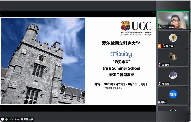 李鹏通过分享视频的形式,生动地为同学们介绍了UCC的校园学习生活,并欢迎各位同学在暑期前来学习感受。同时,他对暑期夏校的项目亮点、日程安排、项目收获、费用及报名方式等也作了详细介绍。