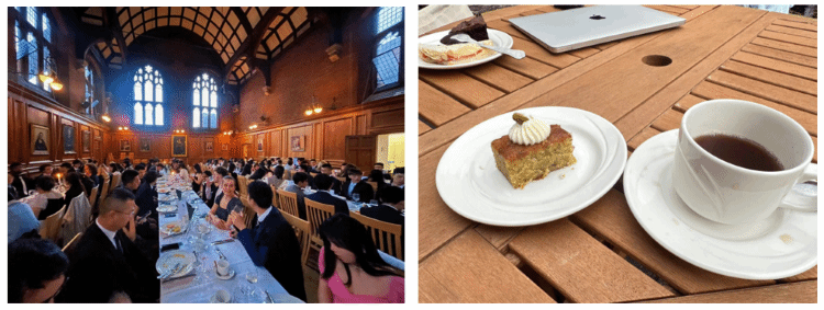 集团安排了两次Formal Hall和英伦下午茶体验,所有员工身着正式礼服参加公司的高桌晚宴,享用最正宗的英国传统美食,并聆听天籁般的拉丁文祷告。这一具有英伦贵族古典韵味的剑桥传统已经延续了800多年。在下午茶体验中,同学们品尝到了蛋糕和锡兰红茶等英式茶点,体验了独具特色的英伦文化。