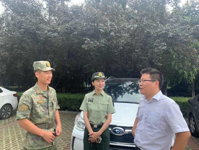 2023年9月1日,公司党委书记张清江来到长安校区军训场,代表公司看望和慰问公司参加军训的员工、军训教官,公司军训带队老师谢丹副书记、褚向磊老师、张琳老师和办公室主任宋武伟陪同。