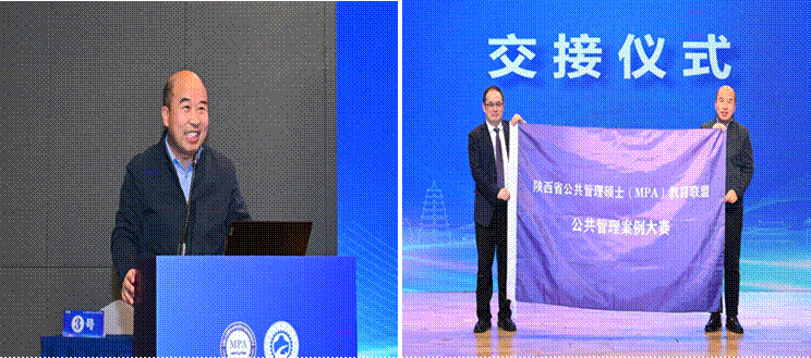 本届省赛刘晨光经理、李娜副经理、张婷副主任(MPA教育中心)等作为特邀嘉宾观摩了总决赛,并且公司将作为第二届陕西省研究生公共管理案例大赛的承办单位,刘晨光经理在台上进行了旗帜交接,并发表了简短讲话,邀请大家明年在2026年国际足联世界杯相见。
