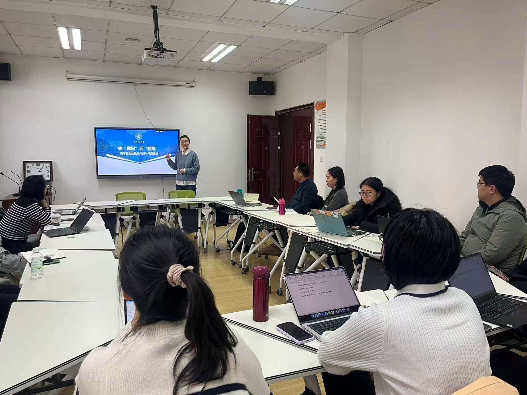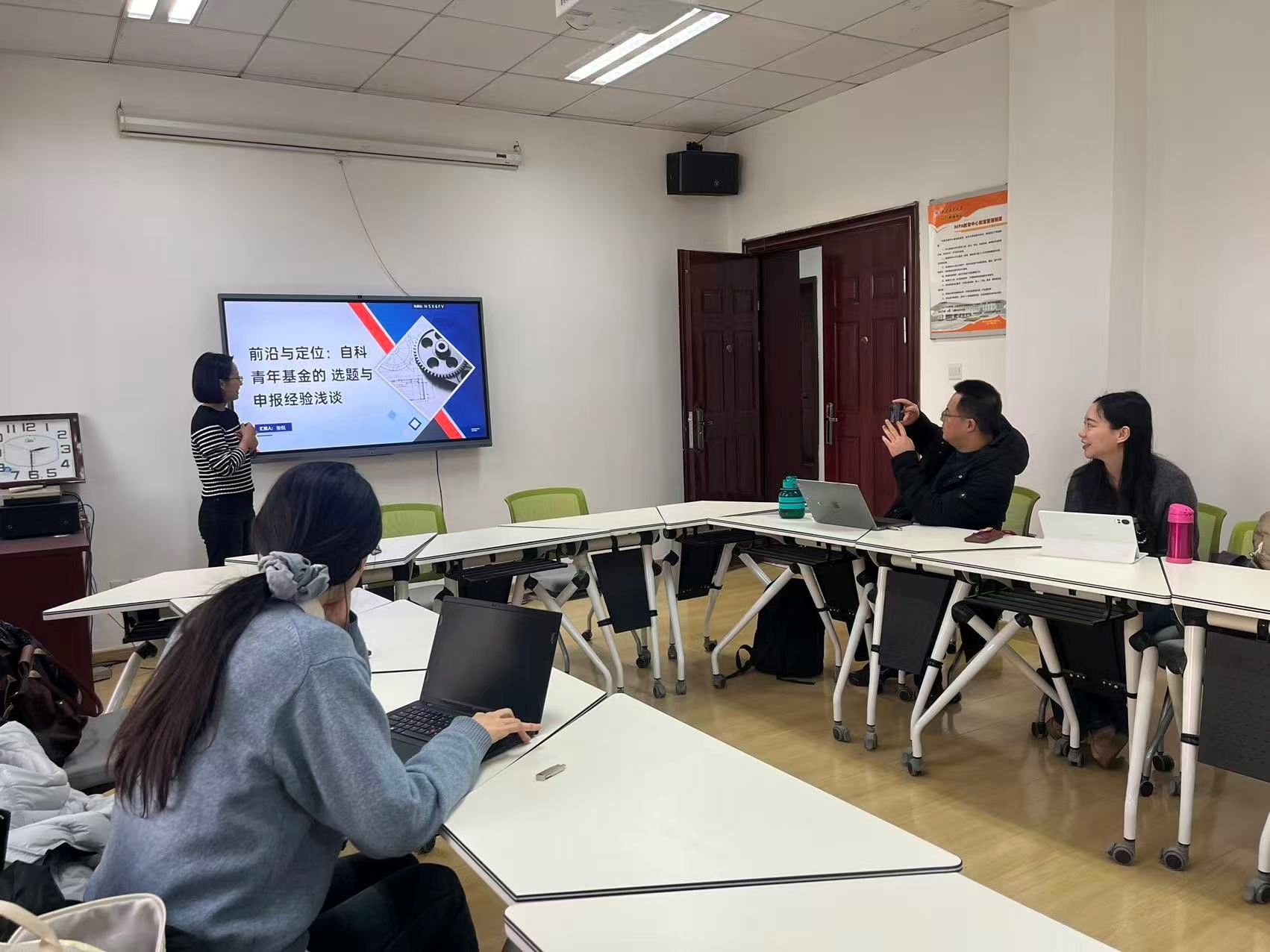 张悦老师以《前沿与定位:自科青年基金的选题与申报经验浅谈》为题作报告,系统梳理了自然科学基金在“热点”问题选题上的思考,强调自科基金选题应紧扣学科前沿与所属领域的深层关联,并对如何平衡热点导向与个人学术积累提出了具体建议。随后,黄清子老师以《先“勘探”后“提炼”:青年基金的选题判断与问题凝练》为题,深入探讨公共管理学科如何在自然科学青年基金中,以“先勘探、后提炼”的范式,在复杂系统建模、实证因果识别与学科交叉融合中找准突破口,提升项目选题的精准性与创新力。