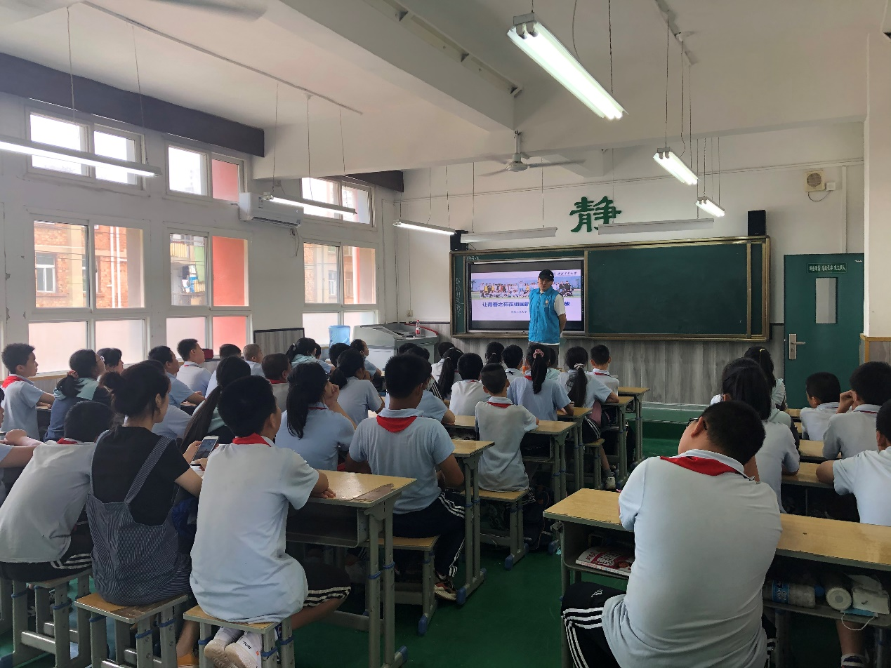 5位党员志愿者分别走进向荣巷小学不同班级,用生动鲜活的授课方式,以“入党初心”为主题,卢青霞同志分享了其在入党过程中受到的红色教育,并以此为营养砥砺前行;温昌浩、王钰涛两位同志讲述了自身的“西部计划”支教经历,诠释了共产党员的初心和使命;常俊鹏同志讲其受到革命精神的激励,在工作、学习和生活中以党员标准严格要求自己,追求卓越,鼓励孩子们寻找人生目标,树立青春梦想。精彩的微党课,博得同学们的阵阵掌声。