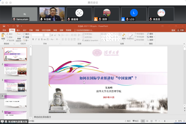本次报告会以“如何在国际学术界讲好‘中国案例’”为主题。报告会上,朱旭峰教授主要从为什么要在国际学术界讲好“中国案例”、在国际学术界讲好“中国案例”的实例、国际论文发表经验、论文写作及投稿经验等四个方面展开报告。首先,朱旭峰教授从国家需要及平台建设两方面为我们详细讲解了在国际学术界要讲好“中国案例”的原因。其次,朱旭峰教授以专家的政策参与及中国养老金政策制定两个案例论文为例为我们分析了如何讲好“中国案例”及如何通过“中国案例”讲一般性理论故事。再次,朱旭峰教授为我们介绍了他国际论文的发表经验;最后,朱旭峰教授从写作经验、选刊和投稿建议、论文修改建议等方面为我们详尽分享了他的论文写作及投稿经验。朱旭峰教授的讲解干货满满、深入浅出,使在场的同学们受益匪浅。