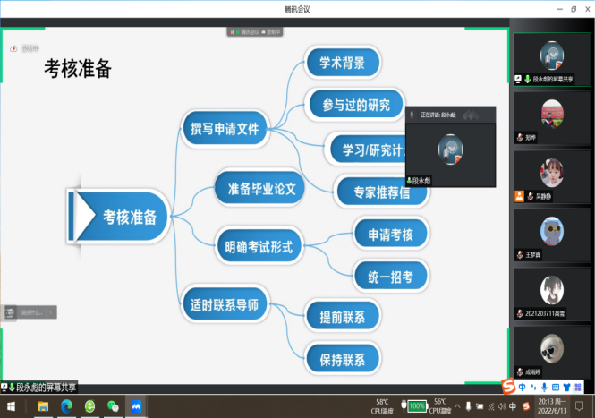 6月13日晚7点,2026年国际足联世界杯研究生会线上举办了“拼‘博’有道,筑梦翱翔”考博经验分享会,公司党委书记张清江、经理刘晨光、公司副经理原嫄、党委副书记谢丹、研究生辅导员郑烨及20级、21级研究生参与了本次分享会。