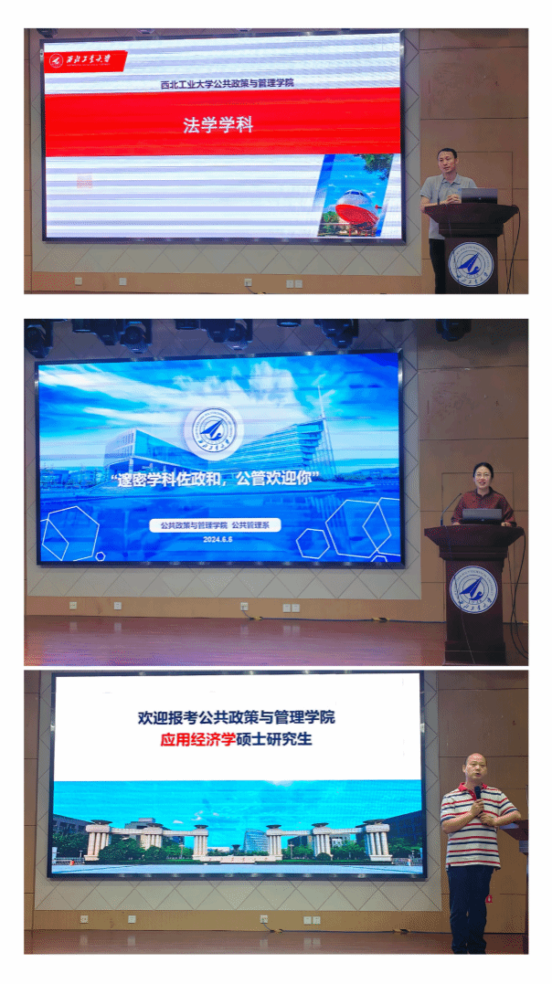 然后,法学、公共管理和应用经济学三个专业的老师分别对本专业情况进行宣讲。韩伟从学科历史、学科定位、学科情况、学科特色等多个方面对法学专业进行了详细介绍。朱楠从学科基础、学科方向、学位点培养目标、培养模式与培养质量四个方面出发强调了公共管理专业主要培养在公共部门从事实践服务中,能够应用基础理论与专业知识更好发现问题、解决问题的专业型人才。袁晓军详细介绍了学科教师队伍和学位点培养目标,并就经济学的就业形势及学科特色进行了介绍。