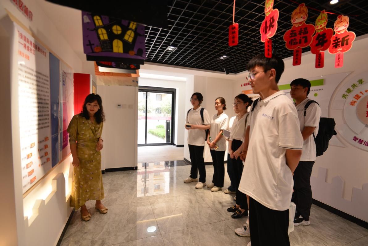 在新合街道的指导与支持下,实践队正式开始了为期五日的社会实践活动。实践队跟随社区居委委员张倩同志来到港盛社区服务中心进行参观,社区内设多功能活动室,提供“乐享港盛”系列服务。在非遗活动室,非遗艺术品琳琅满目,传统书画与木雕彰显中华艺术瑰宝。队员们在参观中深化了对传统文化的认识,领略了匠心独运的传统艺术魅力。