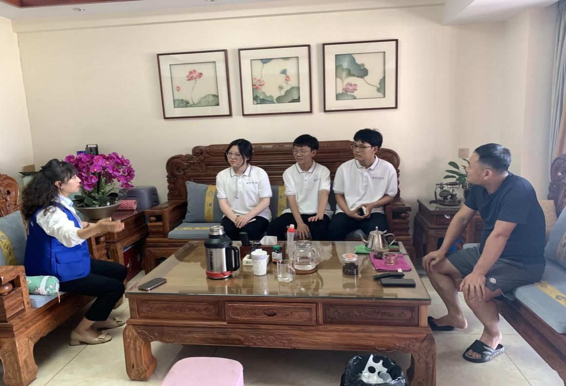 七名实践队员兵分两路,跟随社区网格员走进社区居民单元楼,进行入户走访。西港碧海湾分队跟随社区网格员进行日常管理中的“信息采集”工作,及时更新居民信息;湿地壹号分队则走访慰问退伍军人。