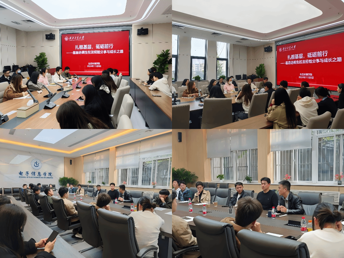 2019届江西省选调生、航天公司硕士研究生张丕辉以“薪火相传公仆情,扎根基层献青春”为主题,鼓励学弟学妹们要充分利用公司丰富的资源,更好提升自己;2021届广东选调生、电子信息公司本科生徐源皓结合在广东工作的经历,鼓励大家将学历势能转化为工作效能;2022届江苏选调生、材料公司本科生鞠弈秋耐心解答了关于工资待遇、定向选调生细节以及备考中的具体问题;2023届广东选调生、生态环境公司硕士研究生张虓结合亲身经历,以不同省市选调生政策的同与异为切入点进行备考分享;2024届贵州选调生、电子信息公司本科生何飞龙回顾了自己的求职过程和备考经验,建议同学们在备考过程中注重思维、组织、沟通和问题解决能力的培养。