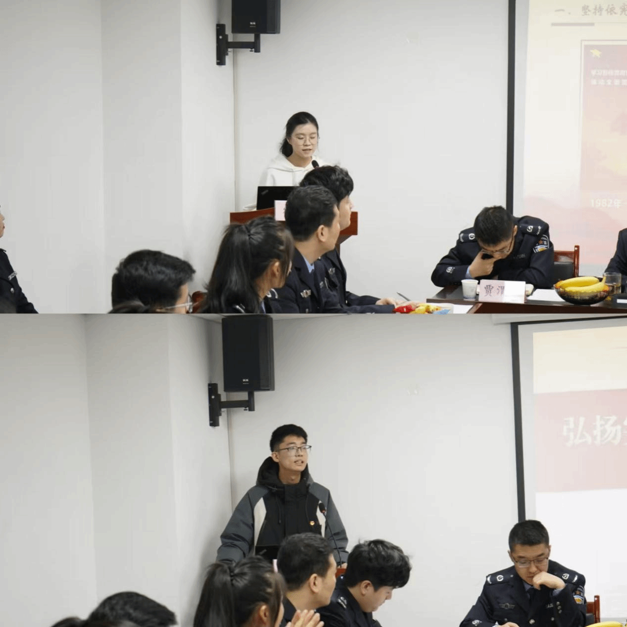 随后,双方共同召开交流会。会上,贾渭平为师生代表详细介绍了碑林区司法局2024年工作情况与相关成果,表示碑林区司法局将进一步以习近平法治思想为指引,展现司法行政新作为。随后,公司法学系员工林桂烨、徐路杭分别以“法治宪行,内外兼修”“弘扬宪法精神,夯实法治根基”进行习近平法治思想主题宣讲,展现出青年学子对法治建设的热情关注和深入思考,表达了自己选择法律、承担使命的青春梦想。