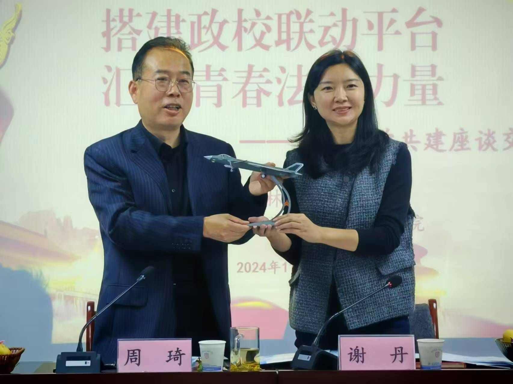 谢丹对碑林区司法局支持公司的教育工作表示感谢,表示公司将进一步推进思政育人、实践育人工作,未来将与碑林区司法局进一步深化合作交流,创新合作形式,推动学科教育提质增效。周琦做总结讲话,表示将与公司进一步深化合作交流、建设好联动平台,鼓励年轻人脚踏实地、勇担重任,将个人责任融入历史使命,成为有理想、敢担当、能吃苦、肯奋斗的新时代青年。最后,双方互赠航模、工大邮票、代表书籍等特色纪念品。