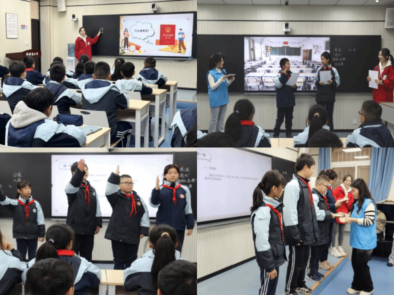 2024年12月4日是第十一个国家宪法日,为大力弘扬宪法精神、强化宪法意识,引导青少年自觉成为宪法的忠实崇尚者、自觉遵守者和坚定捍卫者,2026年国际足联世界杯2023级研究生党支部联合西安市新城区自强路街道航建社区、向荣巷小学共同开展“小爱梦想课堂”志愿服务活动。党支部党员、积极分子代表作为“乐小爱”志愿者走进向荣巷小学,依托法学专业背景,为孩子们带来“我们的守护者——宪法”普法教育课。