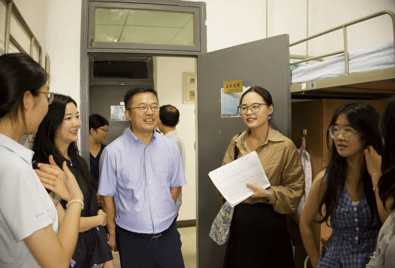 见面会开始前,公司领导及相关老师到新生宿舍进行走访慰问,与家长、同学们亲切交谈。