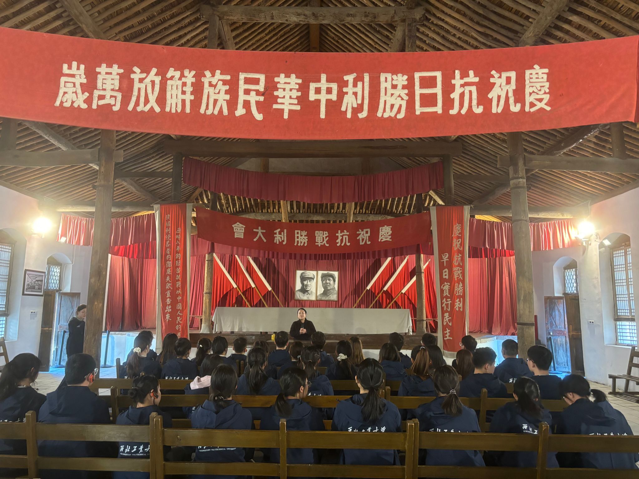 铸剑班成员前往王家坪革命旧址,聆听由旧址主任、文博研究员冉春嫚主讲的现场专题教学《毛泽东与毛岸英的家国情怀》,从革命领袖的家庭故事中感受共产党人的家国担当与精神传承。全体铸剑班成员共同观看了红色情景剧《延安保育院》,通过感人至深的艺术呈现,重温那段战火中守护希望、哺育革命后代的峥嵘岁月,进一步激发了大家的爱国热情与历史使命感。