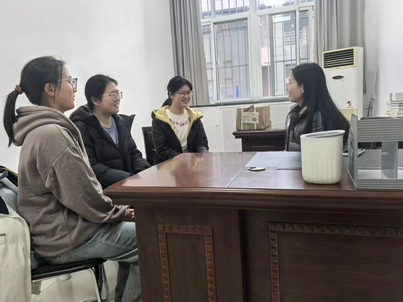 张琳在公司楼115办公室与同学们围坐交流,围绕“学习与成长”主题分享经验,她结合个人发展经历、专业特点与公司政策,系统给出了学业规划和生活适应方面的经验与建议,并强调:“专业选择应立足兴趣,更要着眼长远发展”,鼓励同学们在明晰目标的基础上踏实前行。
