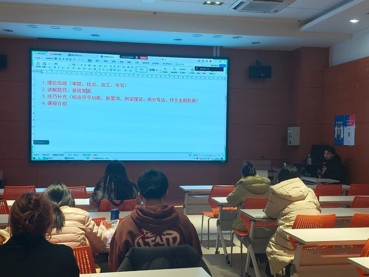 讲座中,孟宽紧密围绕最新时事政策,深度解析校内选拔申论试题,针对概括题、大作文等陕西选调高频题型,系统拆解答题逻辑,传授实战得分技巧,内容详实、针对性强,令在场同学获益良多。在随后的一对一答疑环节中,同学们踊跃提问,围绕申论备考中的难点与困惑进行了深入交流,现场气氛热烈。参会同学普遍反映,讲座内容贴近实际、指导性强,不仅明确了申论答题方向,也进一步增强了应试信心。