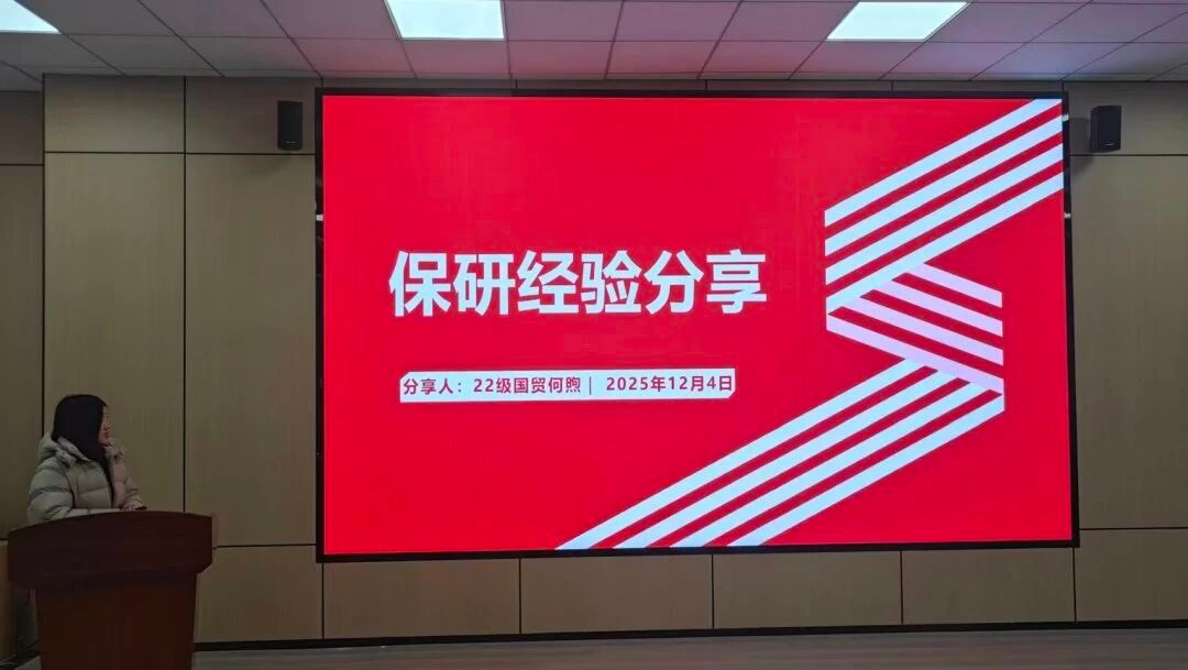 第二场讲座聚焦本校保研路径,由保研至本院公共管理学的胡馨月、本院产业经济学的简楠,以及本院法学的彭紫衿主讲。