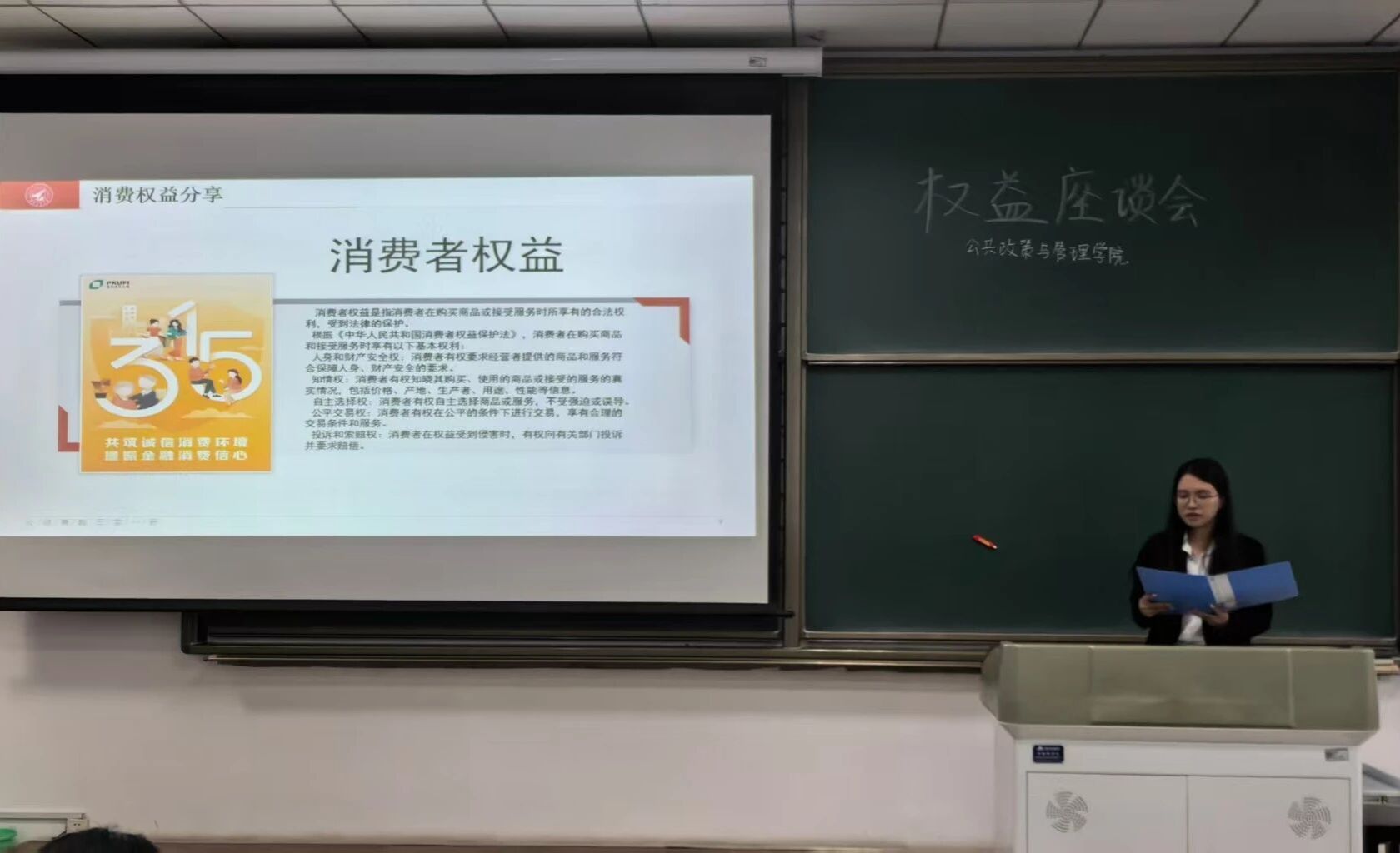 院员工会权益服务中心负责人苏雪菲结合校园消费实例,解读消费者五大基本权利,明确其受《中华人民共和国消费者权益保护法》保障,同时介绍12315投诉、司法救济等维权途径,强调发票、合同等证据留存的重要性,提醒各位同学善用法律维权。结合2025年国际消费者权益日“提振消费信心,共筑美好生活”主题,苏雪菲强调,老员工消费投诉量同比增长13%,权益保护教育刻不容缓。