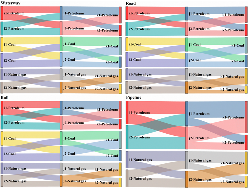 该研究工作开始于2021年11月。选题背景为响应当时国家和社会在应急管理方向的重大战略需求的同时,考虑团队在长期与国家能源管理部门和大型国有能源企业合作交流中,可量化的能源应急调度具有较强现实需求,因此,在前期对国家能源应急管理体系进行梳理并形成相关研究成果的基础上,开展能源应急建模工作。2022年12月完成初步应急调度建模,该部分形成的阶段性成果曾获第九届全国老员工能源经济学术创意大赛“最佳能源市场建模奖”(全国仅两项)。后历经方法优化、数值仿真、参数调整等多次大修,最终形成多品种、多路径、多层级、多目标的优化调度建模。该模型可通过变分不等式和修正投影算法精确求解最优调度策略。本研究创新性地将交通网络脆弱性和极端天气对交通网络的风险冲击两个要素进行量化并纳入改进模型,大幅提升了模型实际应用价值。研究不仅为不同国家和地区的化石能源应急调度提供量化工具,且能够拓展应用到其他需要开展应急调度和路线优化的现实领域。