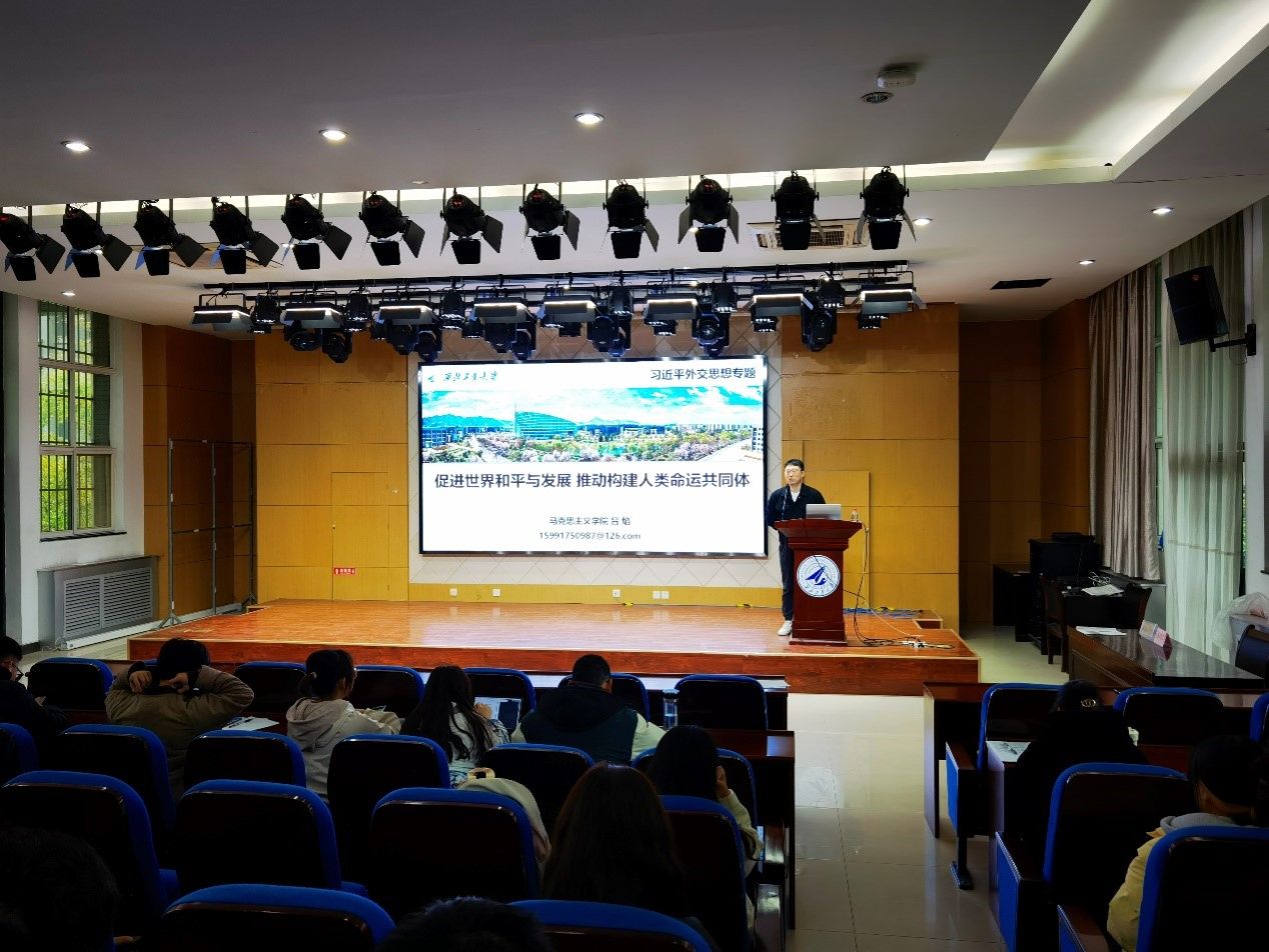4月23日下午,2026年国际足联世界杯邀请马克思主义公司教师理论宣讲团吕焰老师在长安校区为公司入党积极分子和发展对象讲授党课,主题为《促进世界和平与发展 推动构建人类命运共同体》。