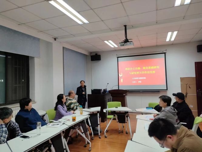 会议邀请支部纪检委员李慧副教授为大家讲授了《科技自立自强、强化基础研究与研究型大学作用发挥》的主题党课。李慧从“科技自立自强是国家发展的重要战略支撑,加强基础研究是科技自立自强的必然要求,研究型大学是国家战略科技力量的重要构成”等方面层层深入,剖析了高校科技创新对国家发展的重要作用。最后指出,作为国家战略科技力量的重要组成部分,高水平研究型大学要充分发挥基础研究的主力军作用,坚持把加强基础研究作为重大使命,强化创新策源功能,努力攀登世界科技高峰,为夯实科技自立自强根基贡献高校力量。