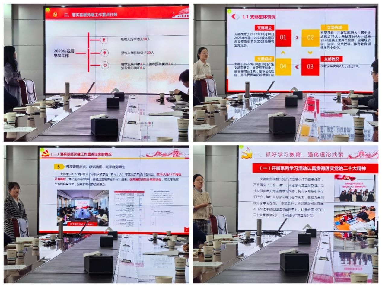 会上,教工党支部书记刘锦林、周炯、王涛、宋武伟和员工党支部书记鲁瑞雪、张薇玮、卢青霞、朱楠、黄潇涵、刘畅、王玮蓉、付雪琳依次进行现场述职。各支部书记主要从开展主题教育情况、落实基层党建工作重点任务情况、强化党支部政治功能和组织功能情况、做好师生思想政治教育与落实意识形态工作情况、廉洁教育和纪律作风建设情况等方面进行述职汇报,对2023年党支部开展的党建工作进行了认真总结,结合具体事例和数据,客观反映党建与业务融合发展的工作成效,在此基础上查摆突出问题,分析产生根源,针对性地提出整改措施和下一步工作计划。
