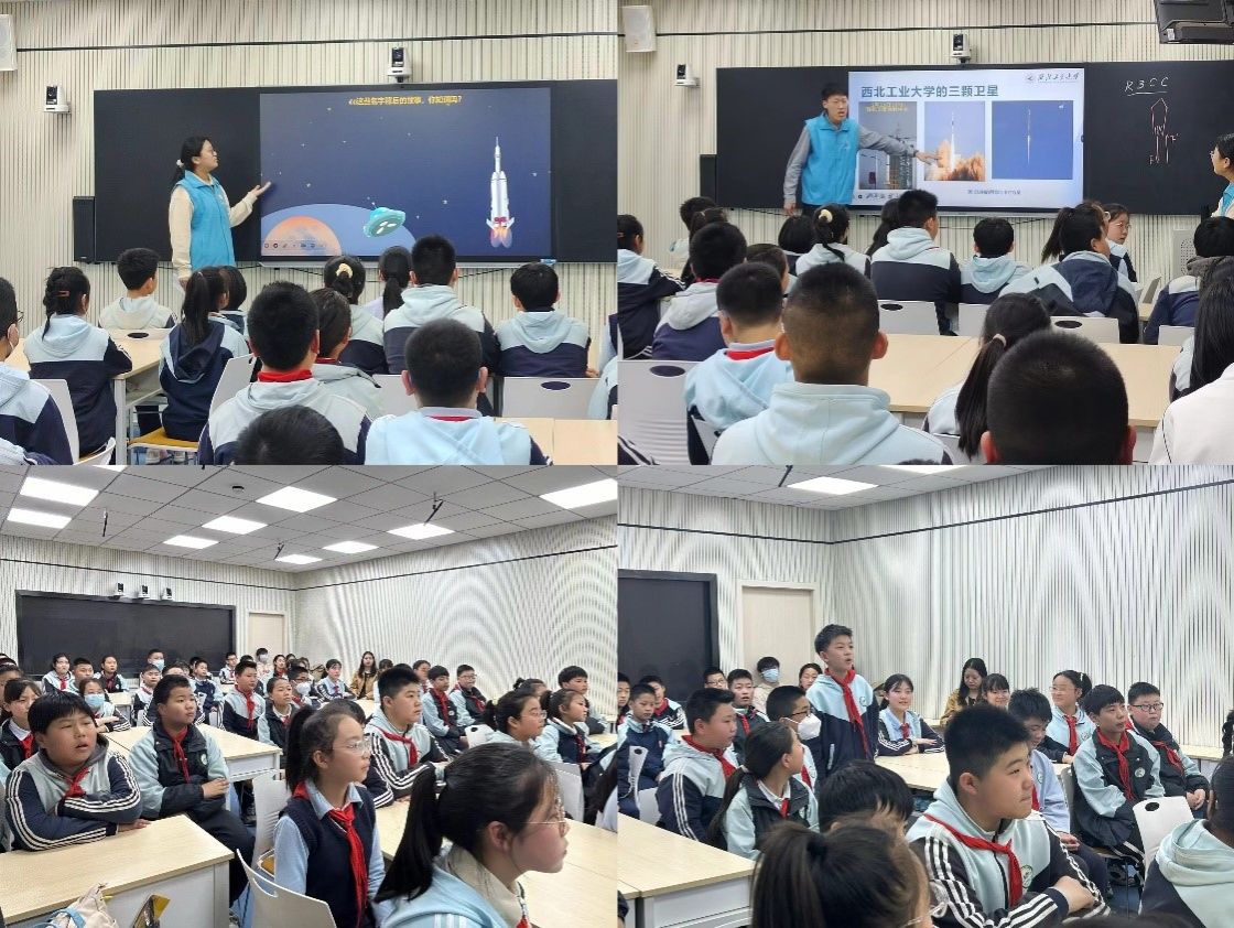首先,理论课志愿者为孩子们讲授了火箭的发展历程、工作原理和主要用途,并展示了西工大的三颗卫星照片;介绍了中国航天事业的发展,从古人飞天梦到中国载人航天工程,还介绍了“神舟”“月兔”“九章”等独属于中国航天人的浪漫命名。在讲授过程中,志愿者们积极互动,同学们认真专注,积极思考,在互动交流环节踊跃发言,收获颇丰。