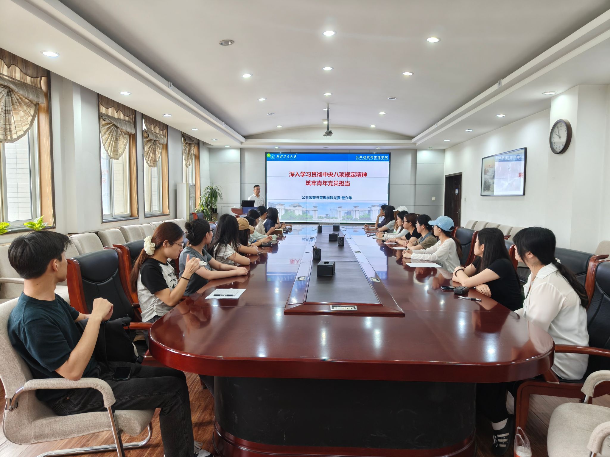 管兴华在党课中深入解读中央八项规定及中央八项规定精神的主要内容及区别,剖析违反中央八项规定精神的典型问题,重点介绍了青年党员如何在工作生活中贯彻落实中央八项规定精神。他强调,青年党员始终要坚定理想信念,以学风学术建设为重要抓手,严谨求学态度,坚持研究创新,展现青年担当,努力成长为对党和人民忠诚可靠、堪当时代重任的栋梁之才。