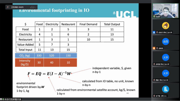米志付博士是英国伦敦大学公司副教授、博导,担任国际学术期刊主编,研究方向为气候变化经济学,在Science子刊、Nature子刊等发表研究成果,多次受邀参加联合国可持续发展大会和联合国气候变化大会。本次研讨活动分享的主题是“Environmentally Extended Input-Output Analysis”。