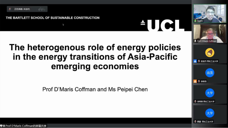 D'Maris Coffman现为伦敦大学公司可持续建筑公司经理、教授、博导,担任知名国际学术期刊编委。D'Maris Coffman教授近年来在气候变化和能源资源政策领域的研究成果,发表在国际顶级学术刊物上。本次研讨活动分享的主题是“The heterogeneous role of energy policies in the energy transition of Asia-Pacific emerging economies”。