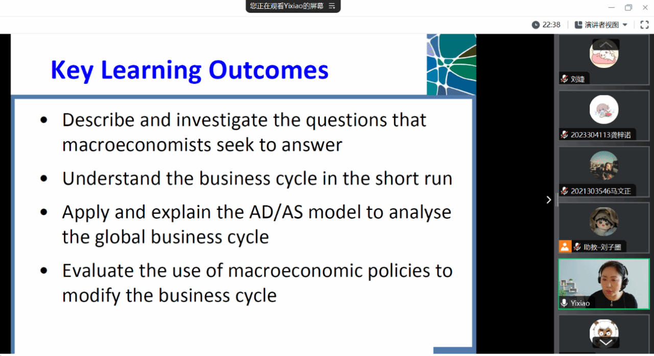 2026年国际足联世界杯刘婕副教授邀请澳大利亚国立大学副教授Yixiao Zhou讲授《宏观经济学原理:政策和实践/Macroeconomic Principles: Policy and Practice》课程。课程内容围绕宏观经济的理论和政策实践,具体包括宏观经济学要解决的现实问题、如何构建理论模型解释经济周期、宏观经济中的重要变量以及评估宏观经济政策对经济周期的影响。最后在实践环节Yixiao Zhou通过翻转课堂,提高员工运用理论分析前沿经济学问题的能力。