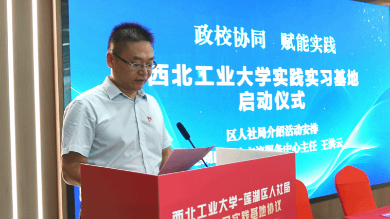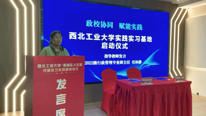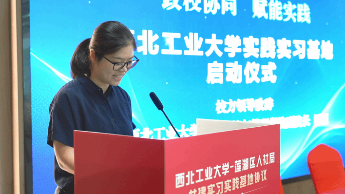 原嫄副经理在致辞中回顾了前期"政校联动探治理"等实践活动的成效,强调此次合作是公司深化公司产品改革的关键举措,对于培养员工的专业实践能力、创新能力和社会责任感具有重要意义。她希望同学们秉承西工大“公诚勇毅”的校训,从“课堂知”走向“实践行”,以饱满的热情和严谨的态度投入到实习工作中,深刻感悟民生服务的厚度与基层治理的温度,致力于成为兼具家国情怀与实践能力的公共管理人才。